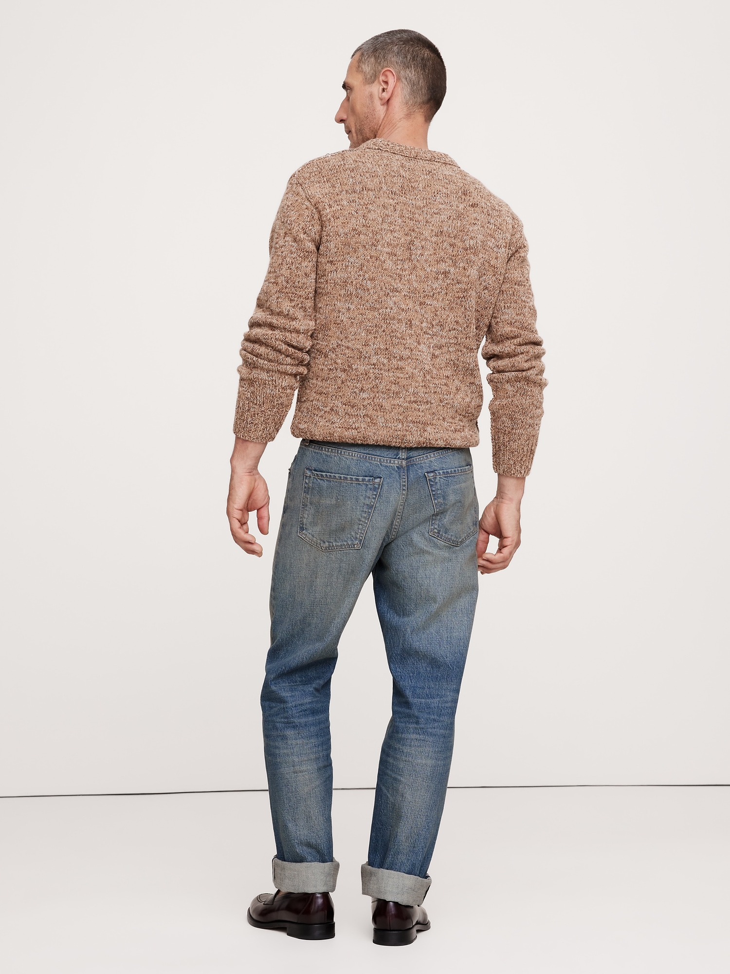 We love selvedge denim, so we set out to create the perfect pair of straight-leg jeans with a vintage-but-better look. Here, the denim is a 14oz-weight so it’s rugged, but light enough for every day wear and will only get better with time. Fit: Mid-rise (12.375\”). Slim through the thigh with a straight leg.