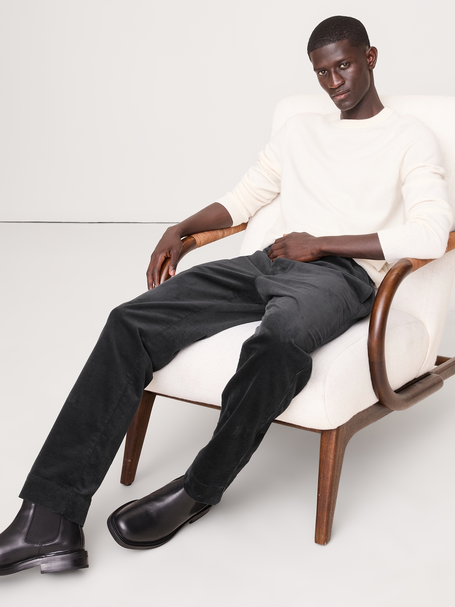 The softness and stretch you love about our pants, now in a cold-weather-ready corduroy with an elastic waistband and a fully functional fly.