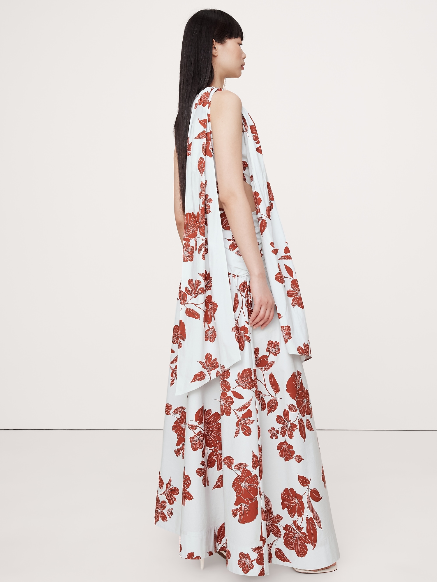 Stretch-Cotton Poplin One-Shoulder Drop-Waist Maxi Dress