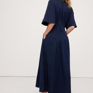 Deconstructed, reconstructed. This long-midi dress nods at the season’s drop-waist trend with corset-inspired pleats at the waist—in our 100% cotton poplin.