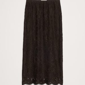 A skirt to make dressing-up feel effortless, we cut this one from stretch-lace and lined it only to the knee, to better show off the scalloped hem detail.
