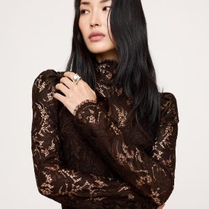 Cut from a stretchy knit lace, this dress feels as effortless as a T-shirt but looks ready for a cocktail event. Wear with the included slip or style with tights and a bodysuit. Sheath Fit: Sits close to the body with a straight skirt. Mock neck with button-keyhole at back. Camisole slip lining. #817720