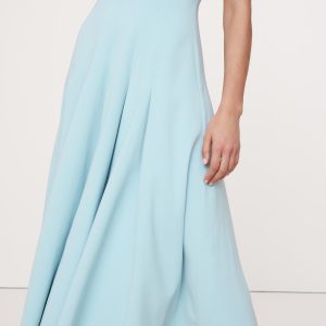 Crafted from a smooth sateen with subtle stretch, this fit-and-flare dress achieves its silhouette with an intricate paneled construction. Plus, the ankle length looks great with heels or flats.