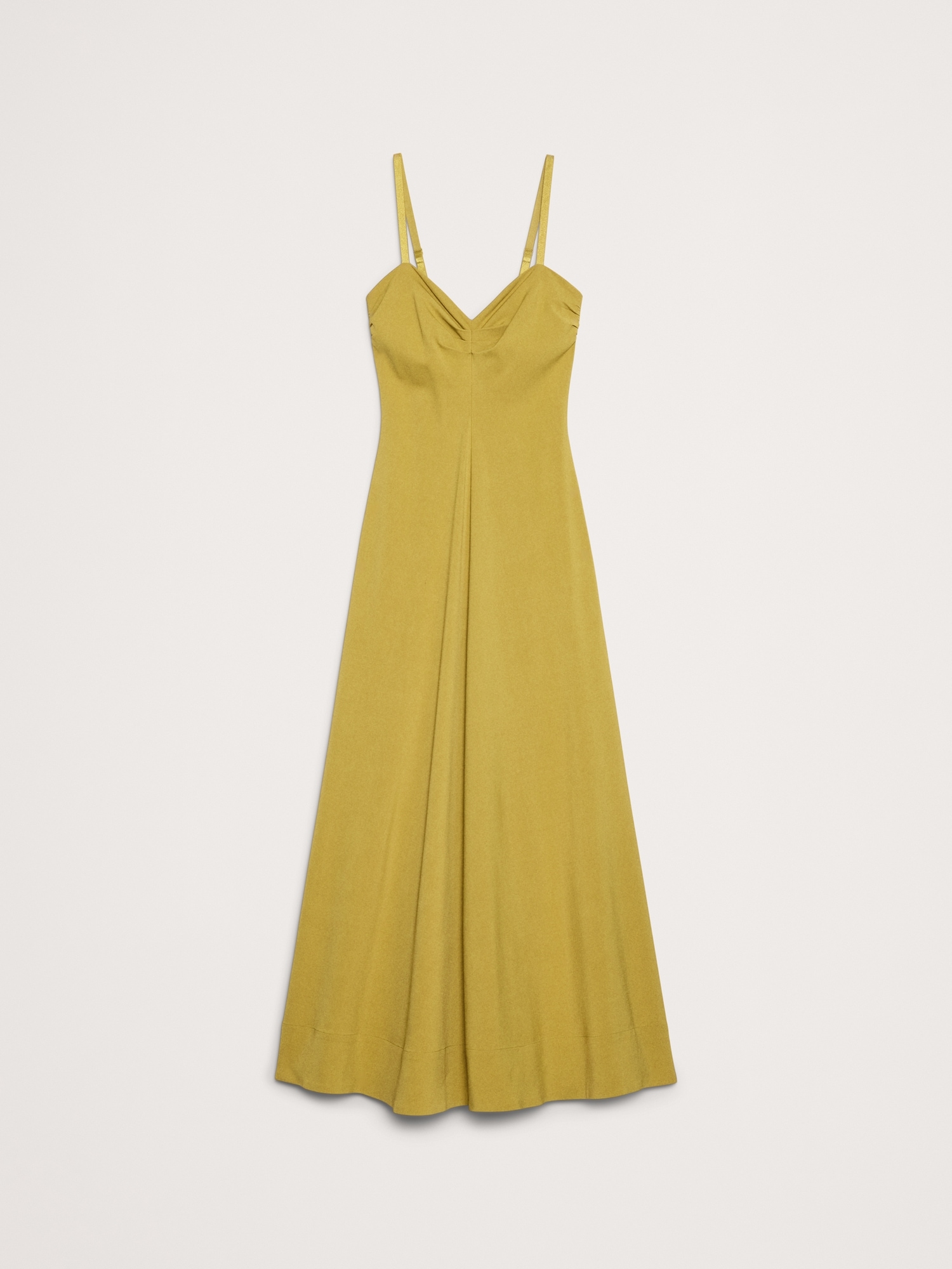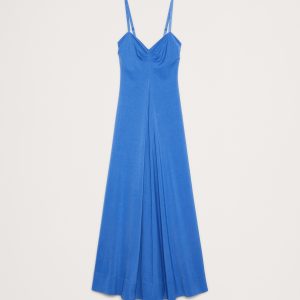 Be a little sweetheart. This stretch-sateen dress achieves its silhouette with a bias-cut construction and ruching at the bust and back waist. Plus, the ankle length looks great with heels or flats.