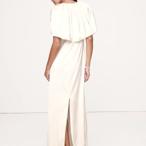 Make an entrance in this maxi dress. There’s a lot to love: the stretch satin fabric, the cape-sleeve detail, and the statuesque, column silhouette.
