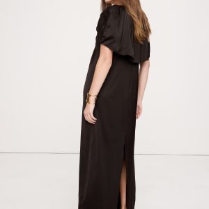 Make an entrance in this maxi dress. There’s a lot to love: the stretch satin fabric, the cape-sleeve detail, and the statuesque, column silhouette.