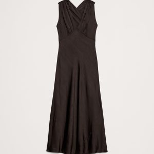 Stretch-Satin Cross-Back Maxi Dress
