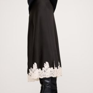 Stretch-Satin Lace-Hem Midi Skirt