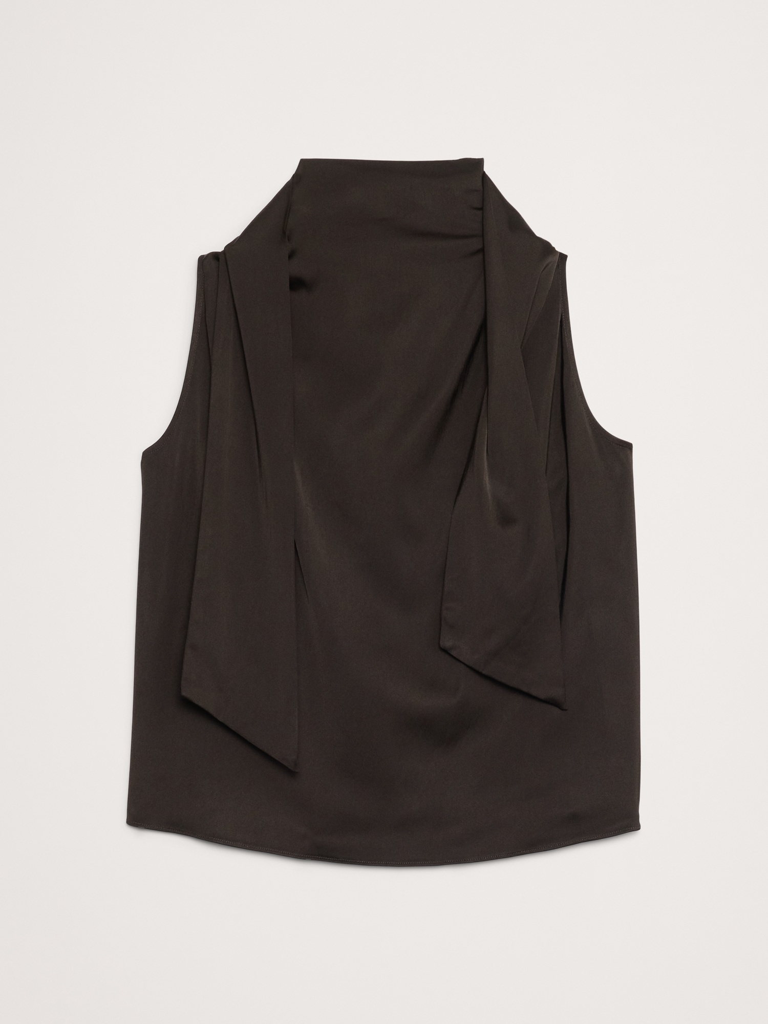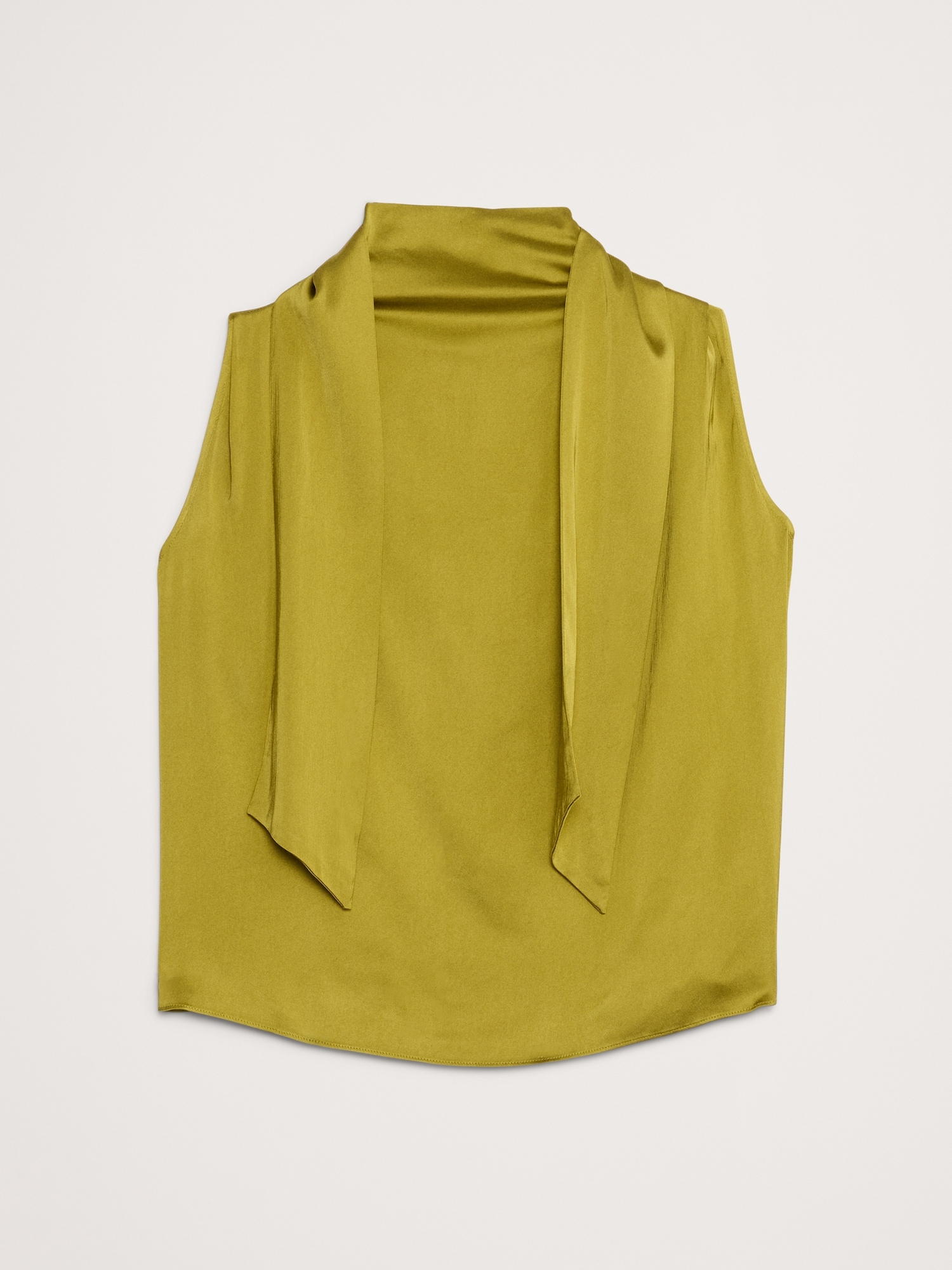 So many ways to wear, we love this top’s silky, stretch-satin fabric and the extra-long ties at the neck so you can play around with them.