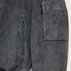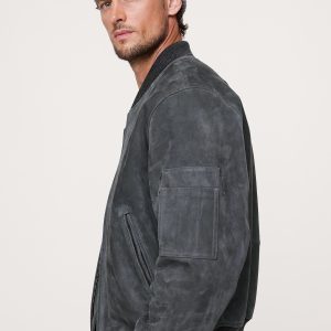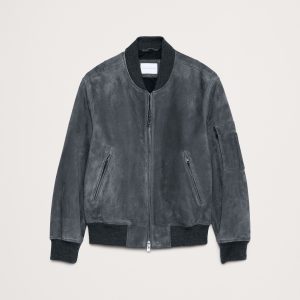 Suede Bomber Jacket with Quilted Lining