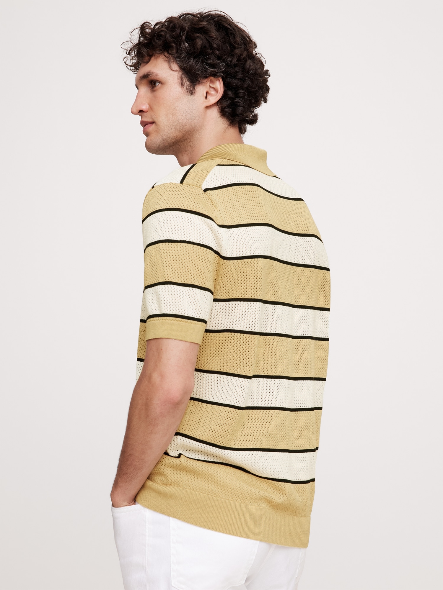 Our take on the season’s mesh trend, this cotton polo has an open knit similar to vintage athletic jerseys.