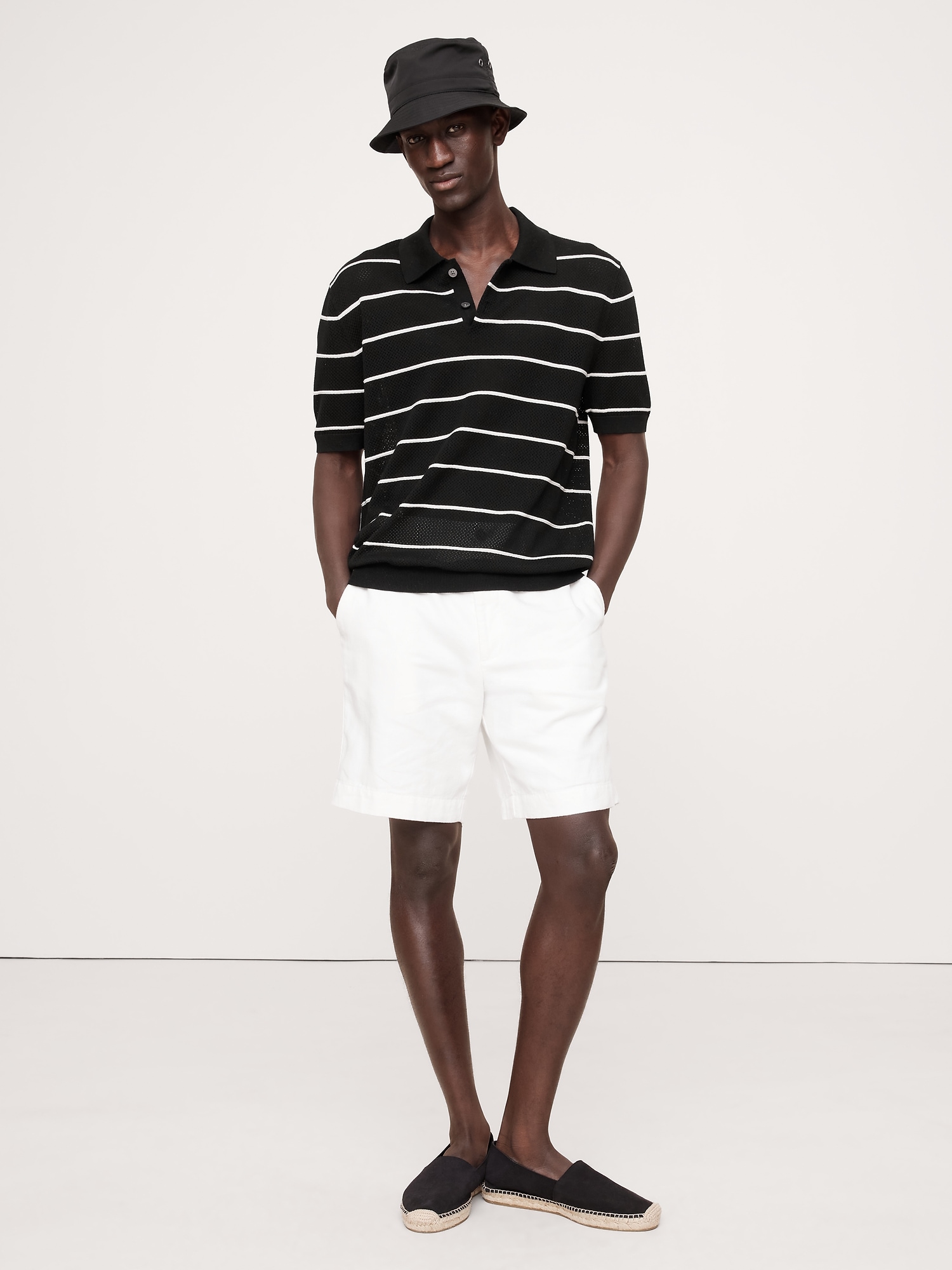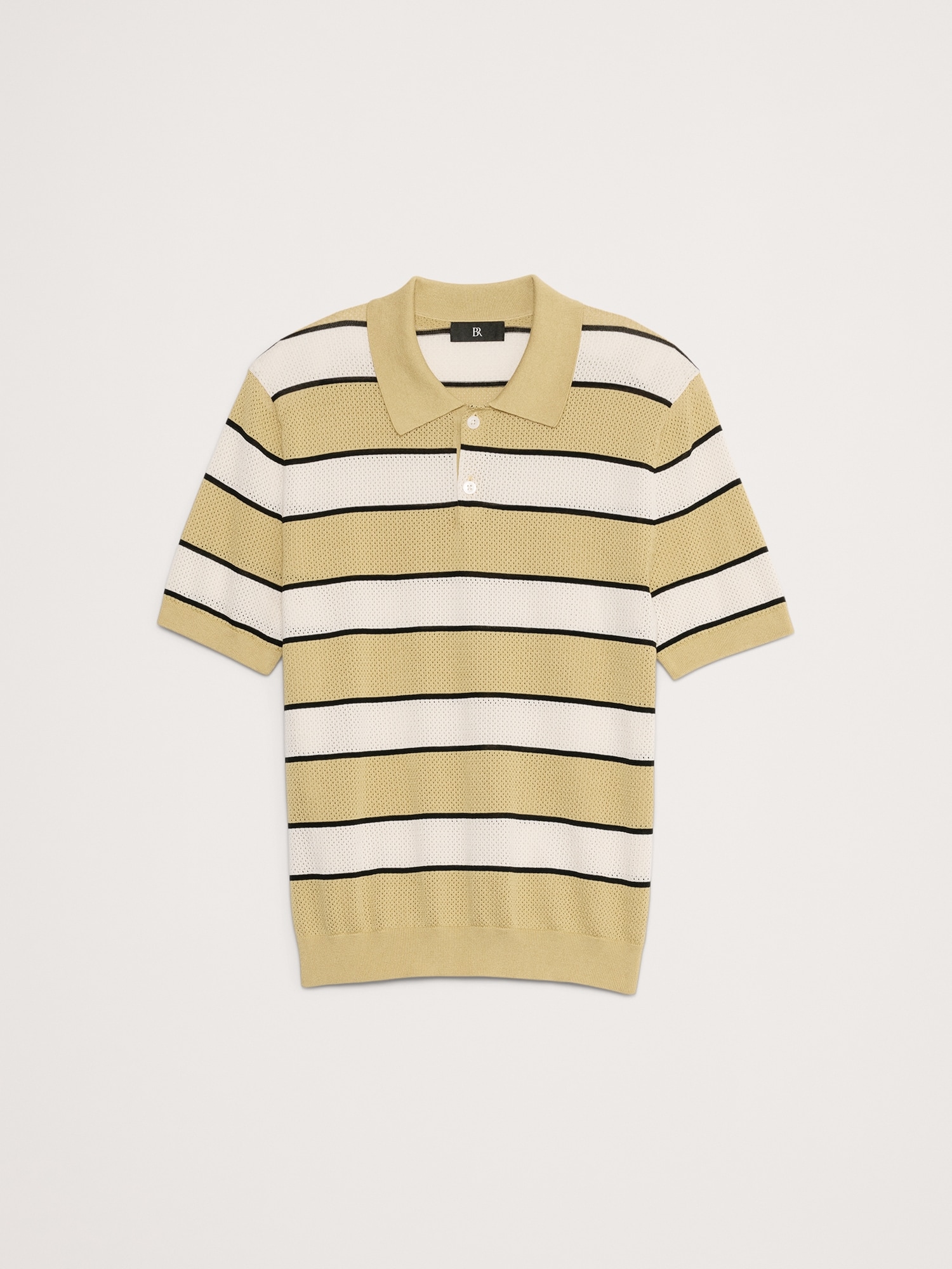 Our take on the season’s mesh trend, this cotton polo has an open knit similar to vintage athletic jerseys.