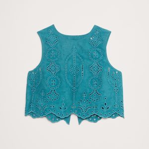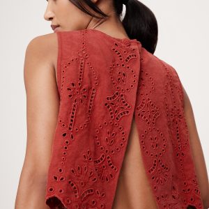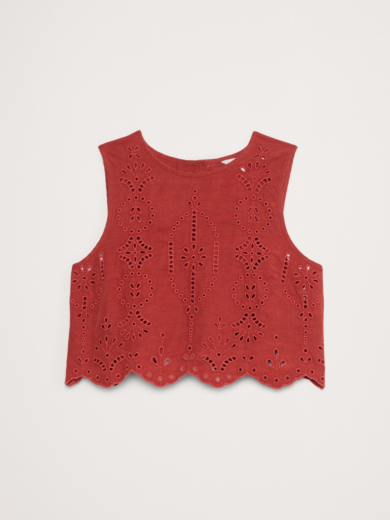 Prepare for compliments. We cut this open-back top in an heirloom-level eyelet fabric that blends silky TENCEL™ and breathable linen. Make it a set with the matching skirt.