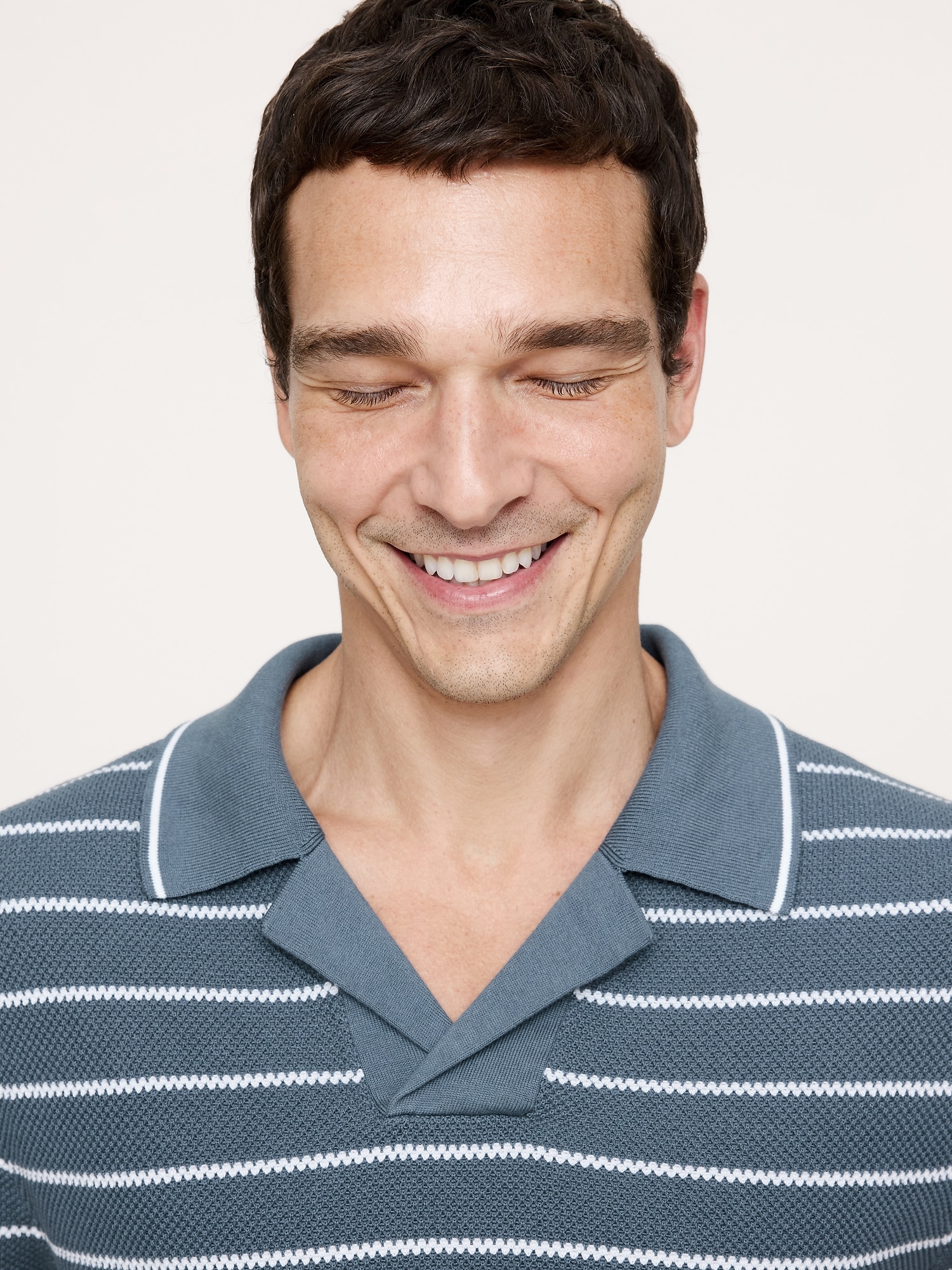 We love a retro sweater polo so we dreamed this one up in our 100% certified-organic cotton yarn (so it’s ultra soft).