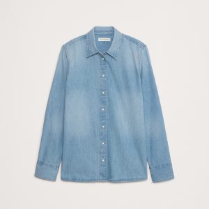 Our Everyday Shirt, Western edition. We designed this shirt in a not-too-loose fit with a classic pointed collar and added a Western-style shoulder yoke seam for a bit of fun. This version is cut in our soft denim shirting fabric so it’s a little heavier than a standard chambray. Everyday Fit: Fitted shoulders, relaxed through the chest and waist. Point collar with snap front. Western shoulder yoke at back. Curved hem. Unlined. #709730