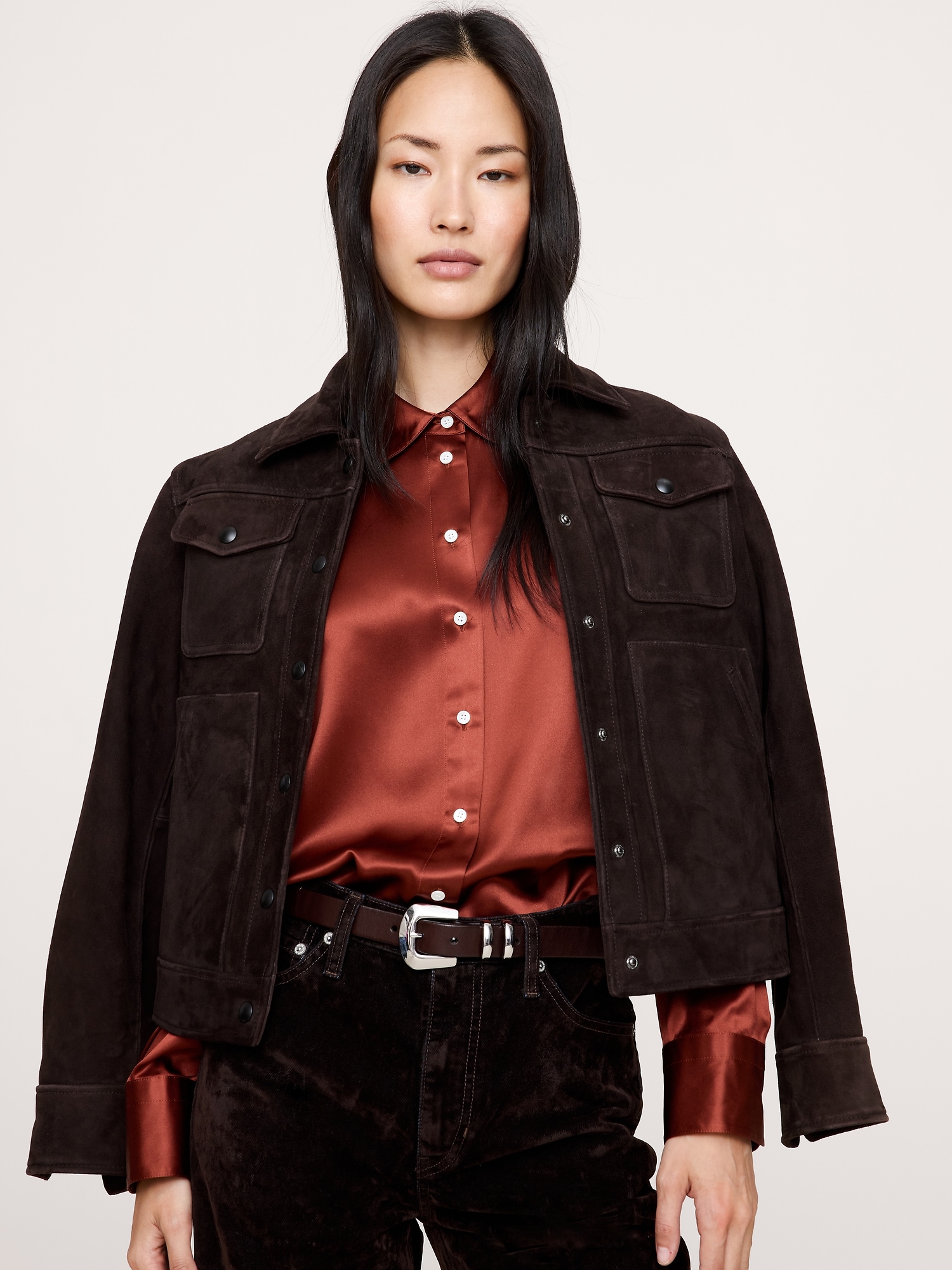 Our Design team’s favorite shirt. We perfected the fit of this shirt so it’s relaxed, but never sloppy. This one’s done up in our signature silk charmeuse—a soft fabric we love for its ability to make every occasion feel a little luxurious. Everyday Fit: Fitted shoulders, relaxed through the chest and waist. Point collar. Troca shell button front. Curved hem. #709208