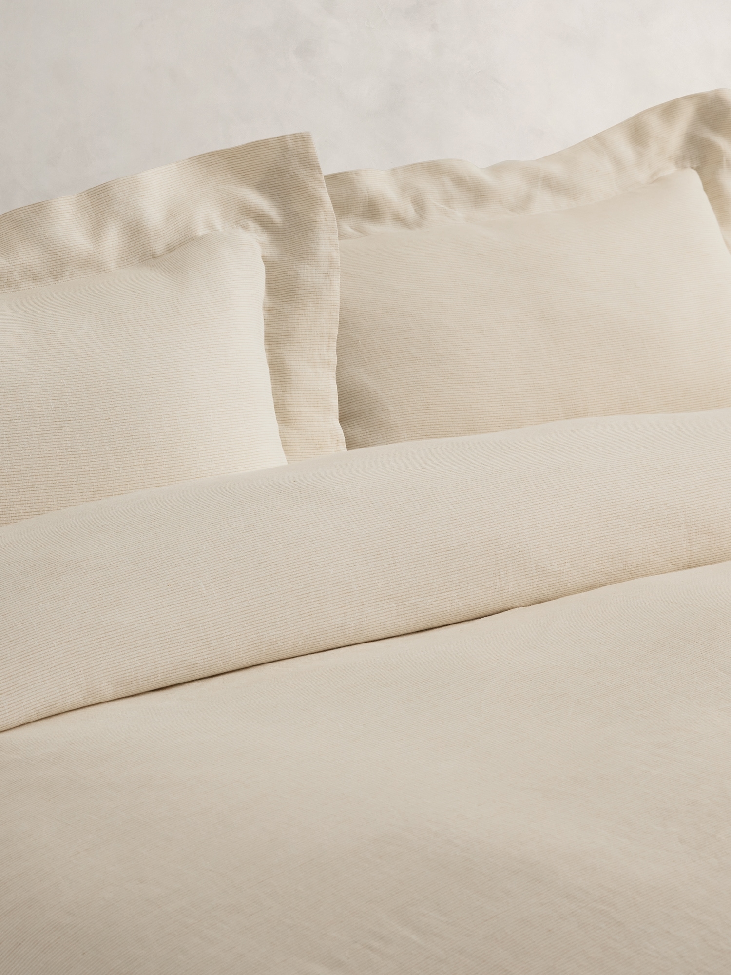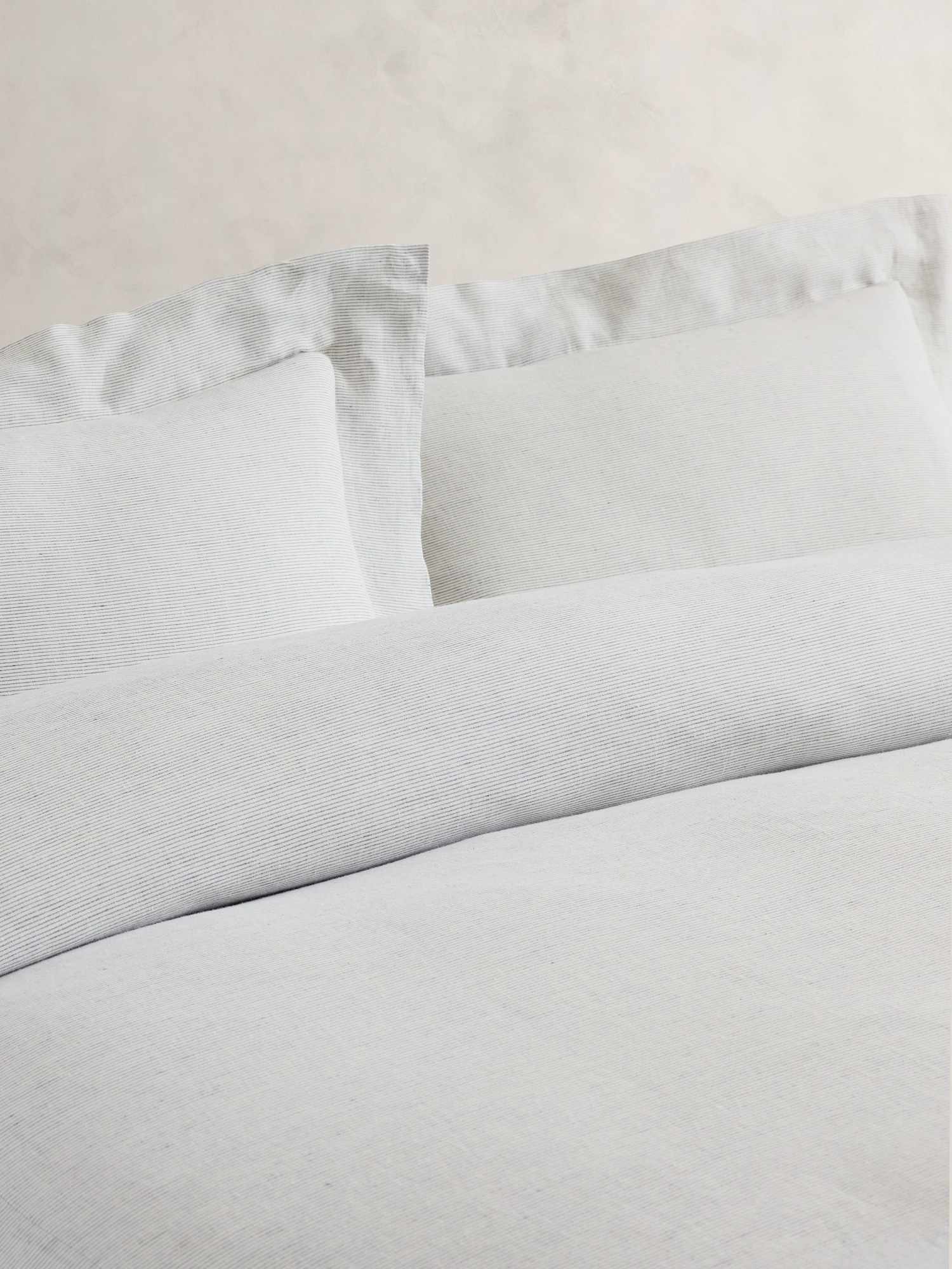 Loomed from premium linen, our duvet cover offers a timeless design and refined hand. The textural material is expertly tailored and adorned with slender stripes for visual dimension. Pair with the coordinating shams to create a cohesive look.