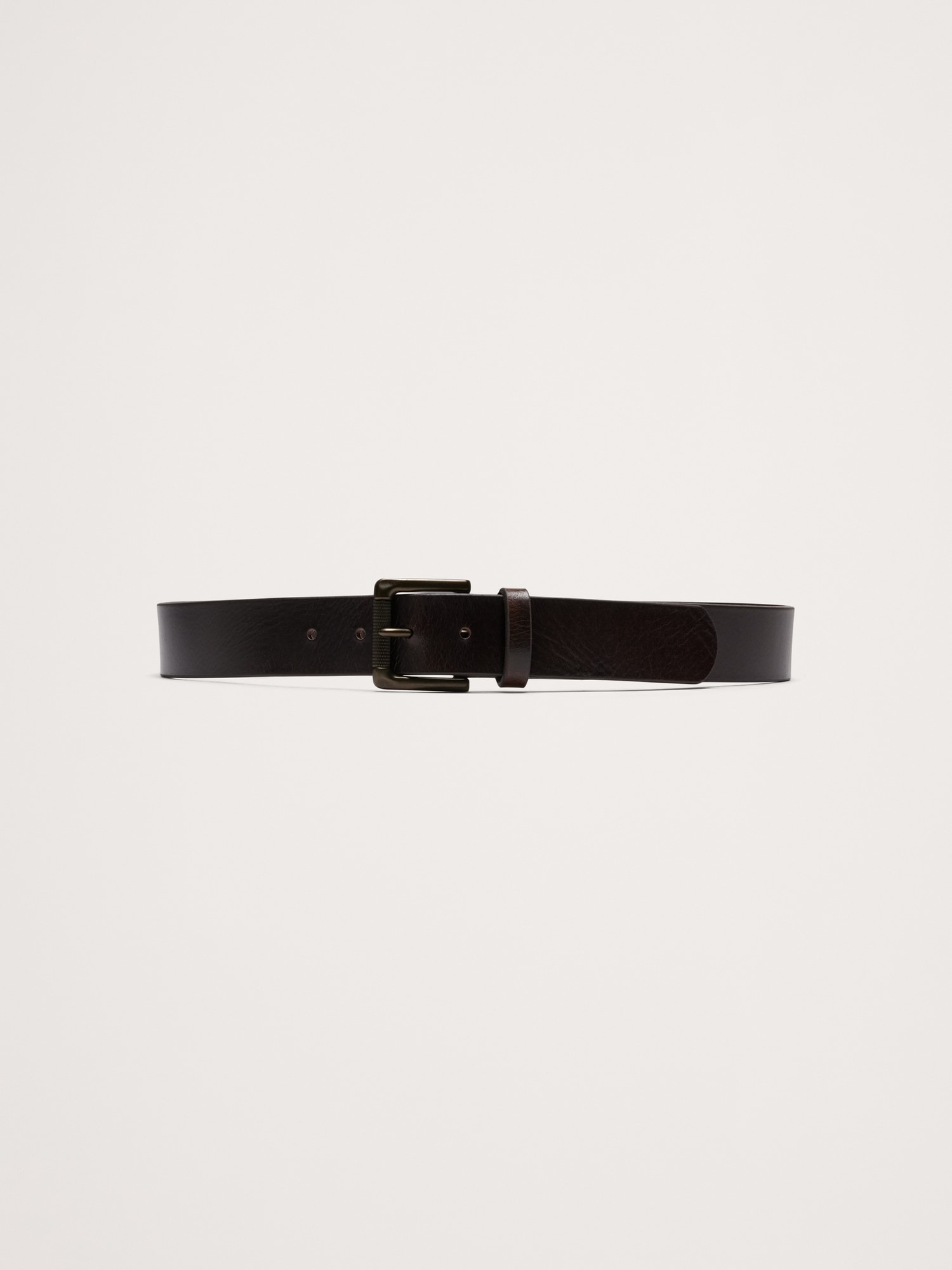 Grounded in timeless luxury, this beautifully tumbled leather belt is sturdy and luxurious with a roller buckle to make it easier for the wearer.