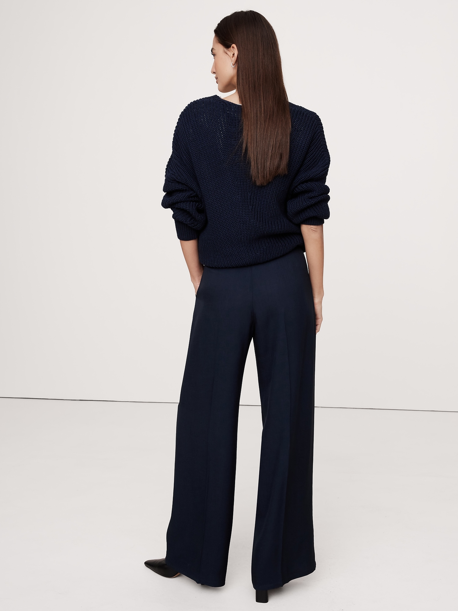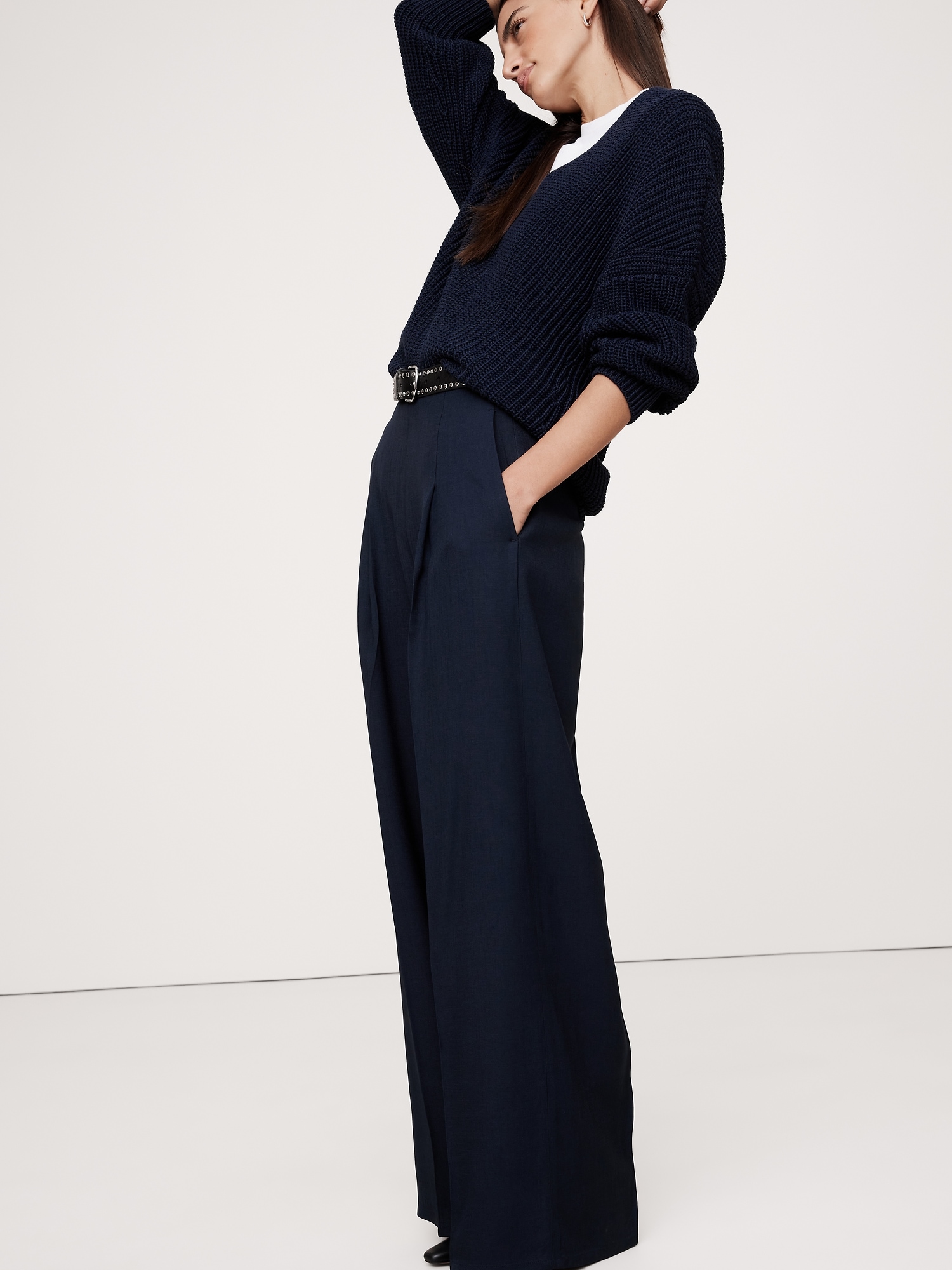 The vibe here is relaxed, yet put-together. We cut these wide-leg pants with double pleats at the waist from our premium drapey twill—a fabric we love because it strikes the perfect balance between tailored and casual-cool.