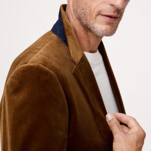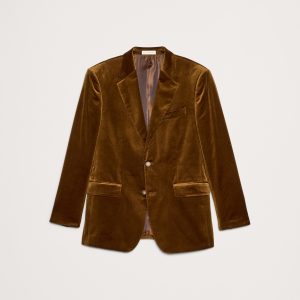 We selected a soft cotton velvet for this statement blazer, cutting it pile-up to enhance its luster and finished with an English-style roped shoulder, which adds a bit of structure and a more formal appearance.
