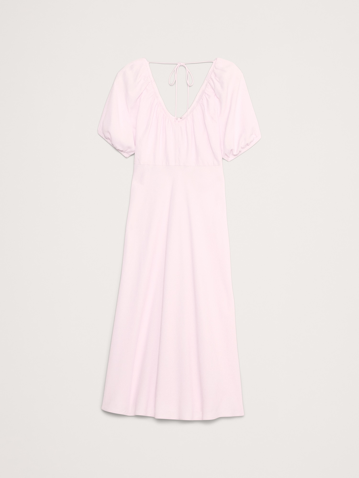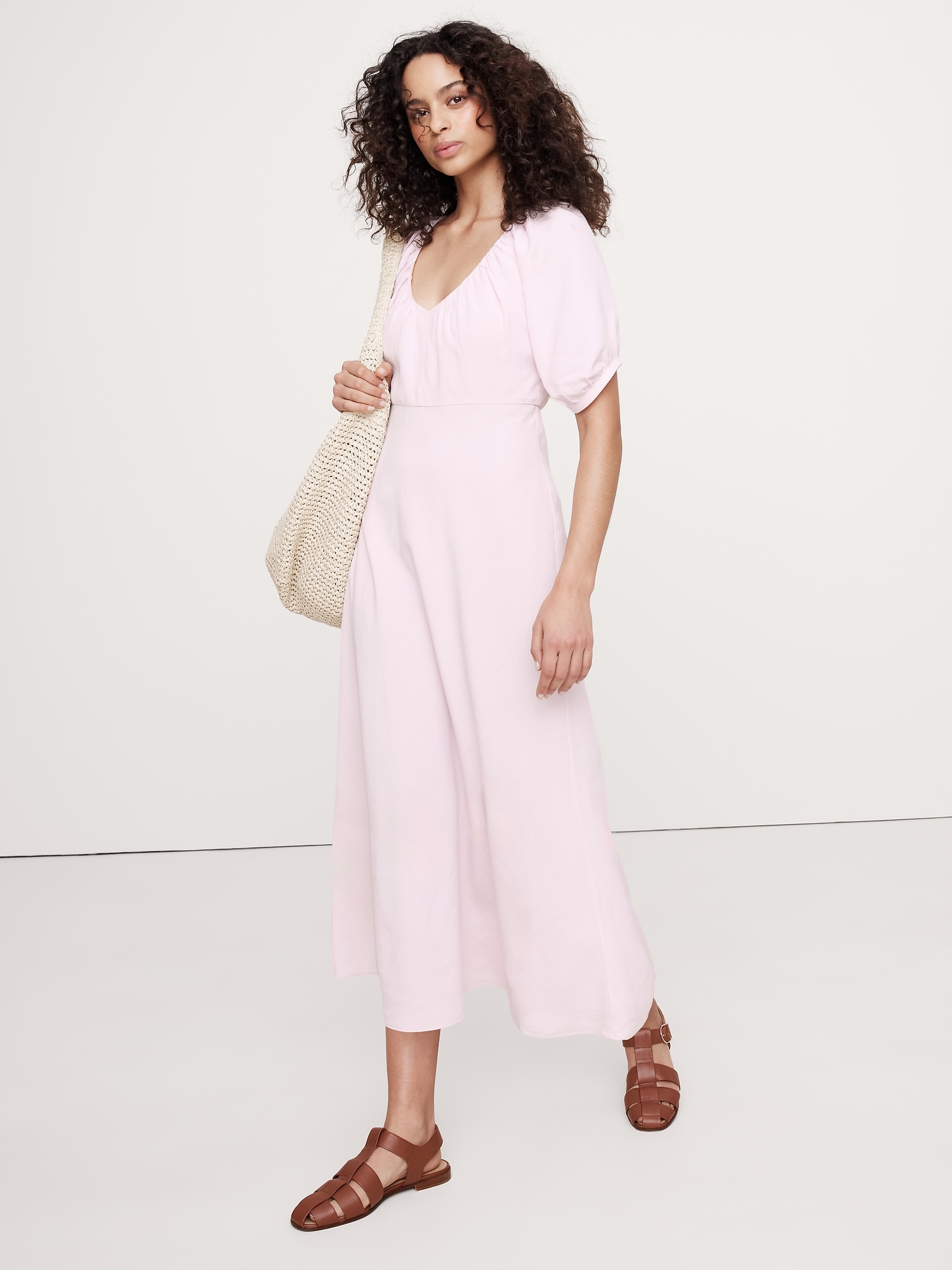 Made for the vacation-minded. This maxi dress has an at-ease fit, crafted in a premium viscose-linen dupioni with distinctive texture.