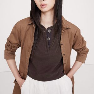 Nothing says cold weather like waffle-knit jersey. Here, we crafted a classic henley in a super cropped length so you can style it all year.