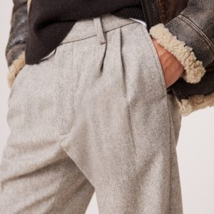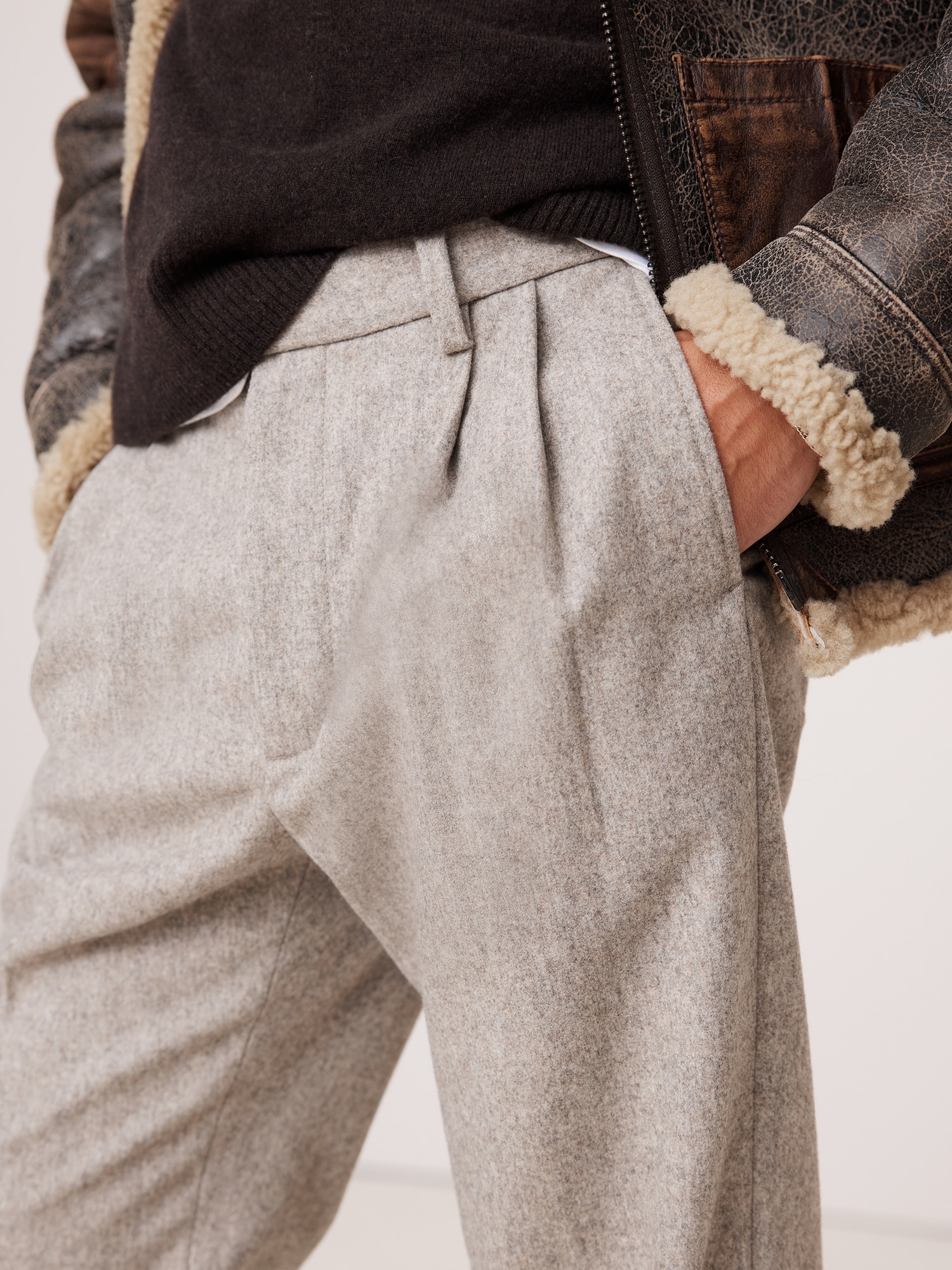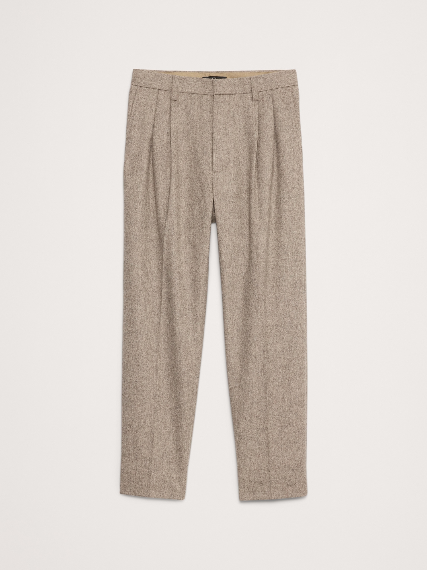 This pleated pant is cut from a beautiful wool-blend fabric—one we love for its softness, dressed-up appearance, and all-season weight. We opted for a relaxed silhouette and a cropped inseam length for vintage-inspired appeal.